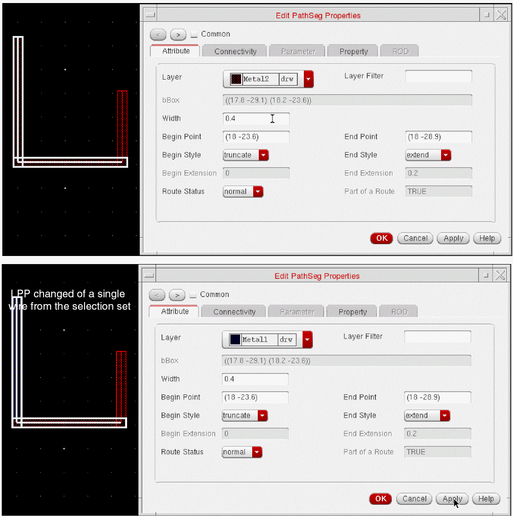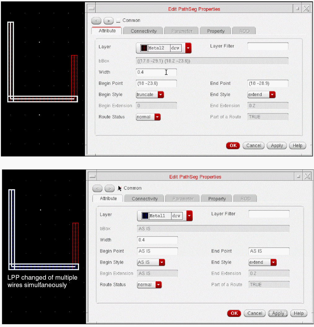 Traditionally, creating a simple contact aperture helps establish an electrical connection between the first metal layer and polysilicon/diffusion. However, in the Advanced Node technology, LI conductive layers are overlapped to establish such an electrical connection. To help establish such connections, Wire Editor has been enhanced to support: