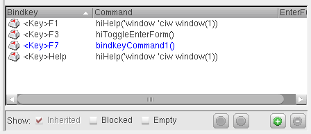 You can configure - add, edit, or delete - the bindkey settings for an application using the Bindkey Editor form that is accessible by selecting Options – Bindkeys from the CIW.