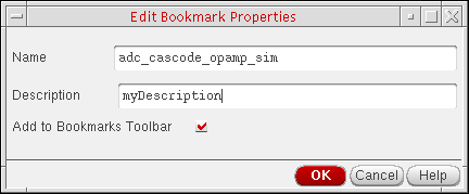 If you do not mark the Add to Bookmarks Toolbar check box, your bookmark appears on the File – Bookmarks submenus only. (You can choose File – Bookmarks in the session window or in the Command Interpreter Window.) -