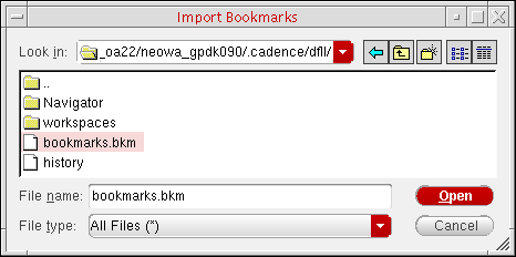 - Navigate to and select a valid bookmark file.