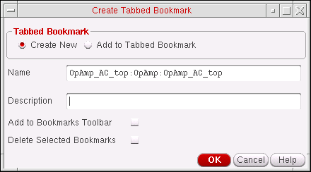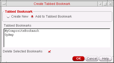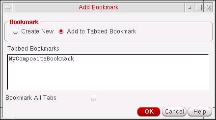 - Select to either create a new (Create New) tabbed bookmark, to contain the selected bookmarks, or an existing tabbed (composite) bookmark (Add to Tabbed Bookmark).