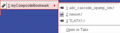 You can also access bookmark functionality from the CIW (File – Bookmarks). When opening/restoring a bookmark from the CIW, the design gets opened in a new session window rather than opening it as a new tab in the current session window.