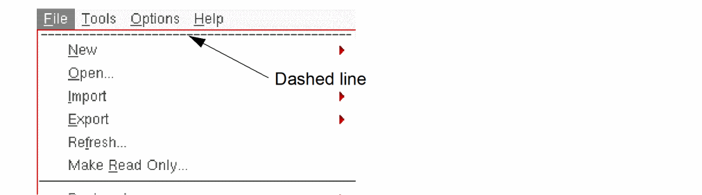The corresponding Menu commands appear. There is a dashed line along the top of the menu.