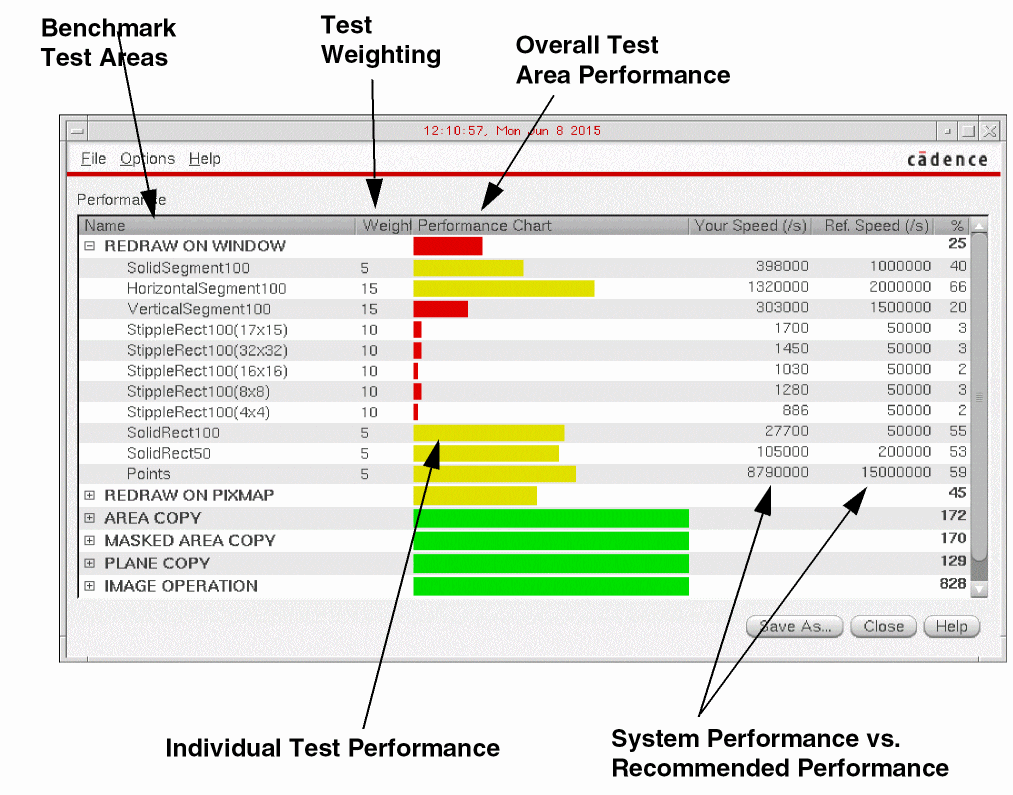 You can save the results in a test (.tst) file by choosing File – Save As. A test results file can then be reloaded in the Graphics Performance Benchmarks window by choosing File – View Saved Results.