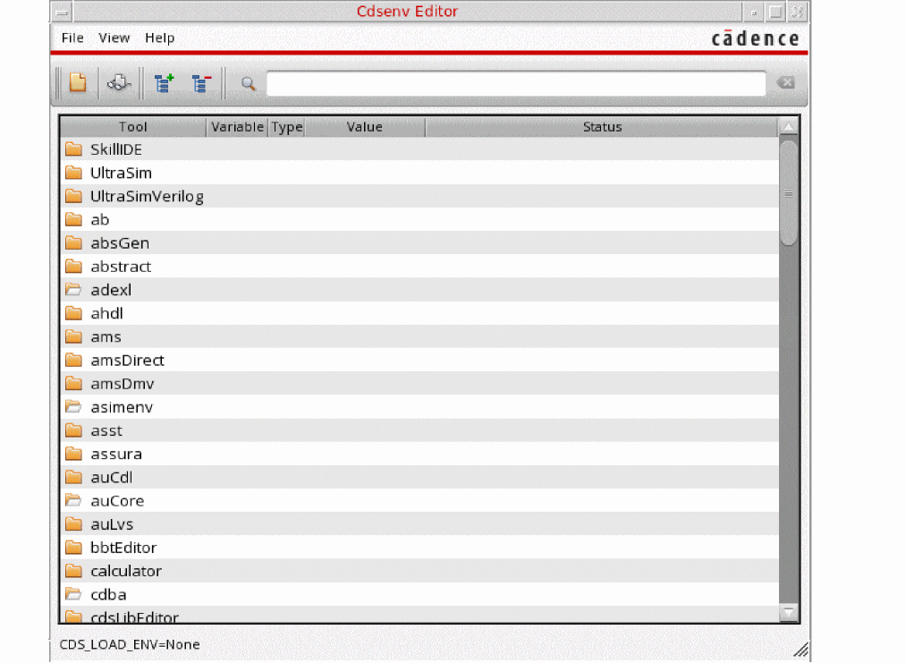 The tools with the open folder icon are loaded into Virtuoso and the tools depicted with closed folder icon are tools are not loaded.