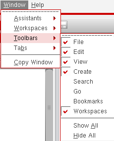 The item appears in your workspace. If you display the right-click menu again, you see a check mark next to the item.To add a toolbar to your custom workspace using the Window menu: -