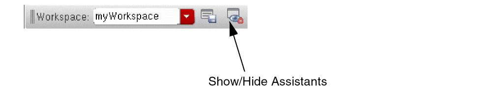On the far right end of the Workspace toolbar, click the Show/Hide Assistants button.