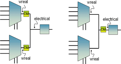 Current-based connect modules are sensitive about the placement of the CMs in the design. From the following figure, you can see that the output current of the one/two connect modules would be quite different in the two cases (assuming a wreal resolution function other than sum). To avoid these types of problems, current based CM is recommended for point-to-point connections only or you have to make sure that the resolution function sum is used for the wreal net in question.