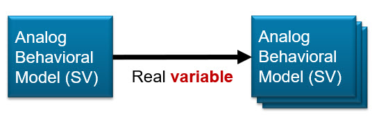 In SystemVerilog-2009, there is no concept of real-valued nets. To provide a similar capability as real signals, real data types are can be defined as variables to be driven like nets. That is, real variable port connections can be passed between modules by copying values between variables.