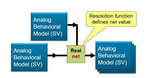 A user-defined nettype is declared with the keyword nettype, and includes a data type and optionally a resolution function. It can carry one or more values over a single net. A real value can be used to communicate voltage, current and other values between design blocks. You can define a user-defined type (UDT), user-defined nettype (UDN), and user-defined resolution function (UDR).